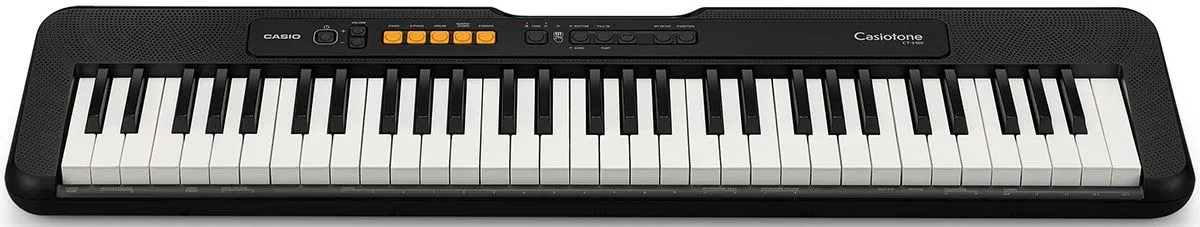 Casio CT-S100 – это цифровой синтезатор начального уровня, относящийся к линейке CasioTone, которая названа в честь первого портативного инструмента компании, выпущенного в 1980-м году и имевшего цель сделать подобные устройства доступными для большинства людей за счет низкой цены, малых габаритов и дружелюбного функционала. Данная модель из обновленной серии является самой младшей и предлагает скромное по современным меркам количество встроенных звуков, а также только самые необходимые функции для домашних занятий, репетиций и выступлений на концертах.
