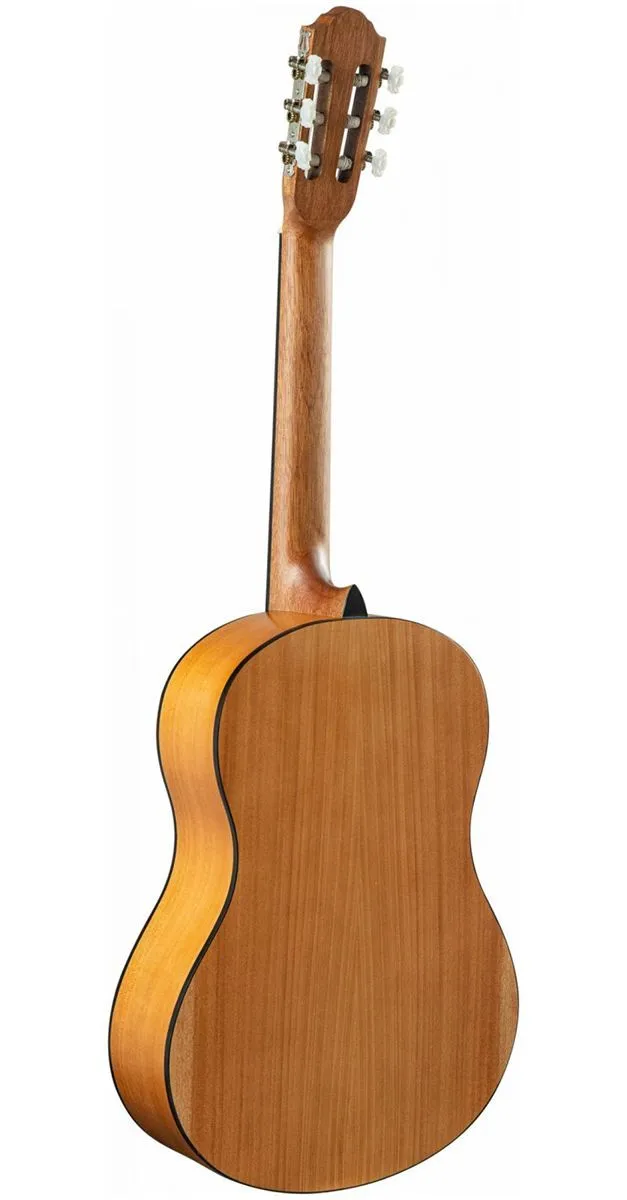 Верхняя дека изготовлена из ели, что обеспечивает чистое звучание, так необходимое для грамотного развития слуха. Нижняя дека и обечайки из красного дерева, благодаря чему звук приобретает мягкость и глубину. Надежная колковая механика обеспечивает мягкий и точный ход колков, легкость при настройке, а главное - хорошо держит строй.