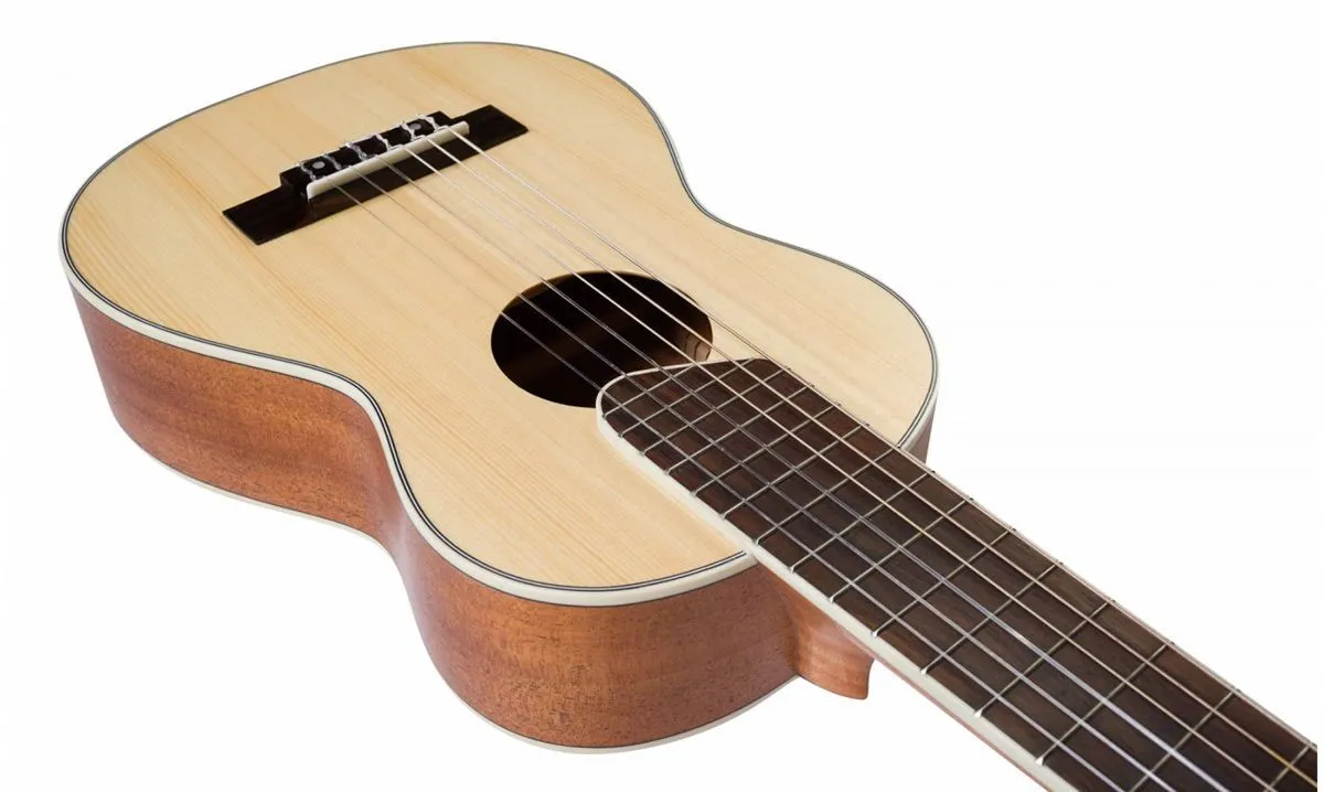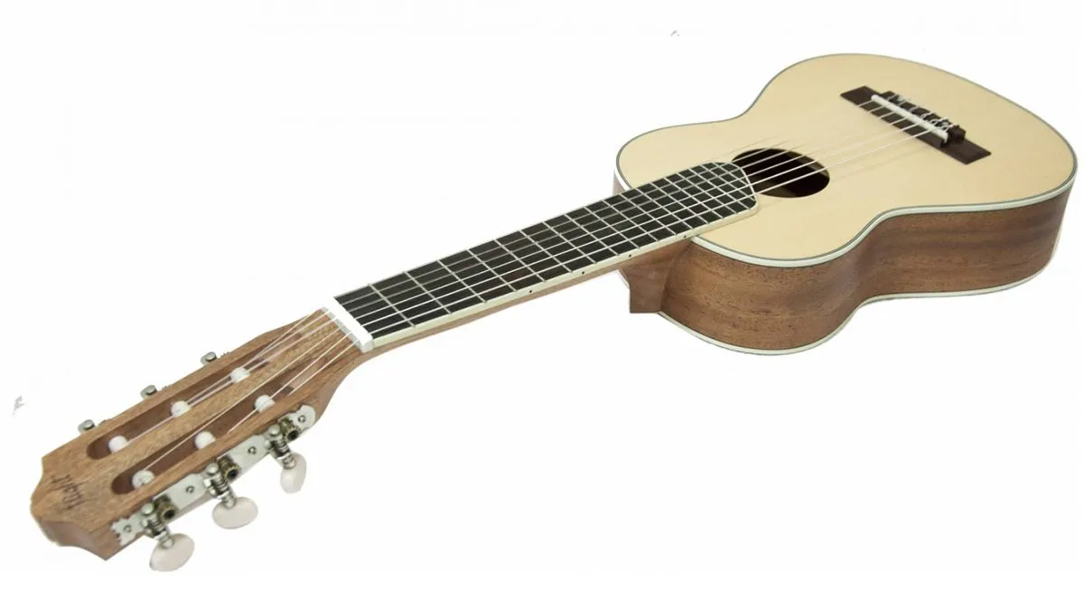 Гиталеле Flight GUT 350 SP/SAP - гиталеле - гитара 1/8 малого размера (432 мм) с нейлоновыми струнами. Несмотря на компактный размер, по игровым характеристикам и качеству производства она не уступает полноразмерным инструментам. Верхняя дека выполнена из ели, нижняя дека и обечайка из сапеле.
